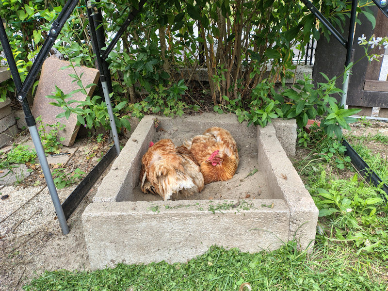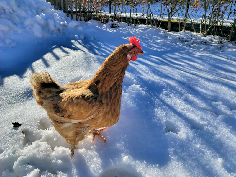 All’inizio liberavamo le galline solo quando potevamo vederle. Ora apriamo il recinto alle 8 del mattino e lo chiudiamo appena fa buio (alle 17.30-18.00 in questo periodo dell’anno) e troviamo le galline sono già nella casetta accovacciate pronte per dormire. Quando piove forte durante il giorno vanno automaticamente al riparo dalla pioggia e appena smette escono a cercare qualche lombrico che proprio grazie all’acqua esce dal terreno.